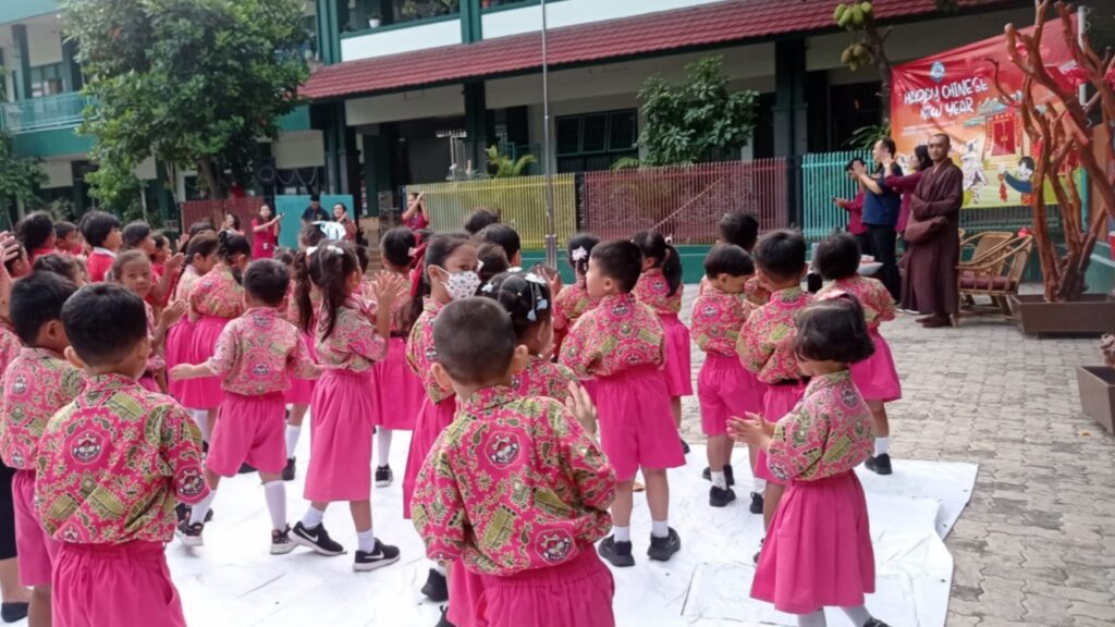 Acara dibuka dengan doa bersama yang dipimpin oleh seorang Biksu, memberikan makna spiritual yang mendalam bagi perayaan ini. Selanjutnya, Ketua Yayasan Barongsai dan Kepala Sekolah SD menyampaikan sambutan. Menariknya, di sela-sela sambutan, Ketua Yayasan Barongsai mengadakan sesi tanya jawab dengan berhadiahkan angpao yang disambut dengan sangat antusias oleh para siswa untuk menjawab pertanyaan tersebut.