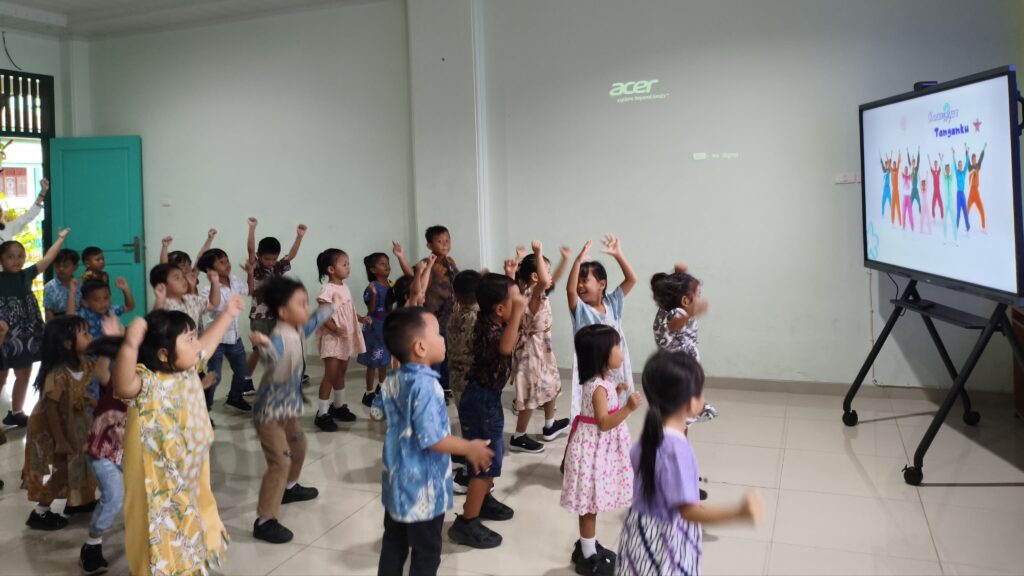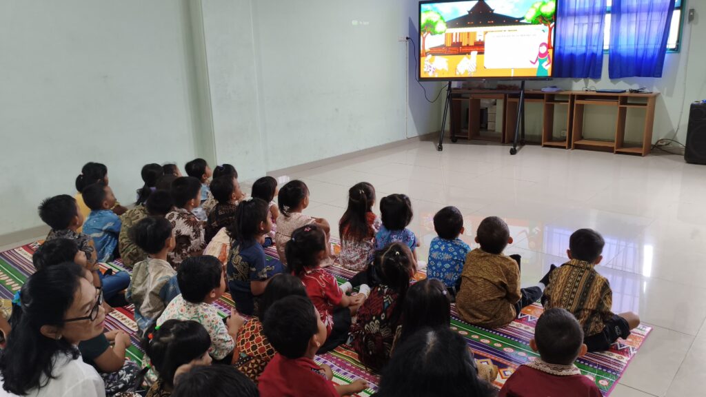 Kegiatan hari ini dimulai dengan senam bersama yang diikuti seluruh peserta didik dan guru TK Xaverius 2 Bandar Lampung. Gerakan penuh semangat dari seluruh peserta membuat suasana pagi terasa segar dan ceria. Setelah itu, anak-anak diajak menonton tayangan mengenai sejarah batik, yang menjelaskan bagaimana batik tumbuh dan berkembang sebagai bagian penting dari budaya Indonesia. Tayangan ini memberikan pemahaman kepada siswa bahwa batik bukan sekadar kain, melainkan simbol identitas dan kebanggaan bangsa.